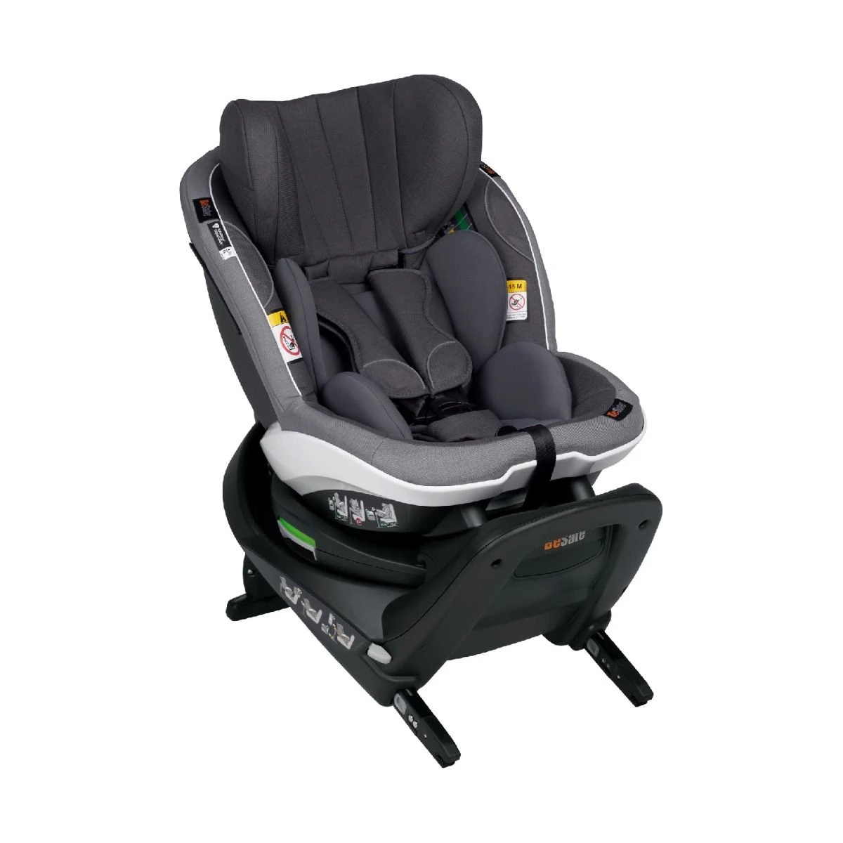 De stoel is 360 graden draaibaar, wel zo fijn voor je rug en handig om altijd vanuit alle posities bij je kindje te kunnen. Ook heel fijn is het digitale veiligheidssysteem. Deze waarschuwt u per app als uw kind zelf zijn gordel losmaakt of wanneer u per ongeluk uw kind in de auto achterlaat.